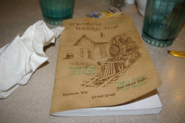 The Aro Restaurant had excellent food. They also had a copy of "Wyoming Whistle Stop" on every table. That book had many stories, recipes, and adages to keep me amused while I waited for my roast beef. |