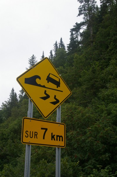 First, the tall cliffs were dripping moisture towards the road and this case formed a small waterfall (Chutes le Voile de la Mariee). |