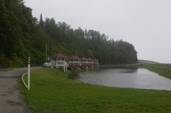 Because of the poor weather conditions, my progress towards Bonaventure was slow. There was rain AND fog and I always waited to follow another vehicle for two reasons: 1) I let them to the "forge ahead" thing and 2) paired with a bigger vehicle, I would be more visible to traffic coming up from behind me. As I said in the introduction to this page, my main goal was just to get to my hotel. Unfortunately, it meant driving through some very pretty spots without stopping to admire them. Therefore I fully intend to drive the Gaspe Peninsula again! |