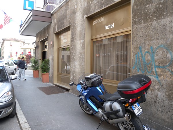 My bike (Italia) in front of the Piccolo front entrance... remember this is Italy... you can park wherever you like!